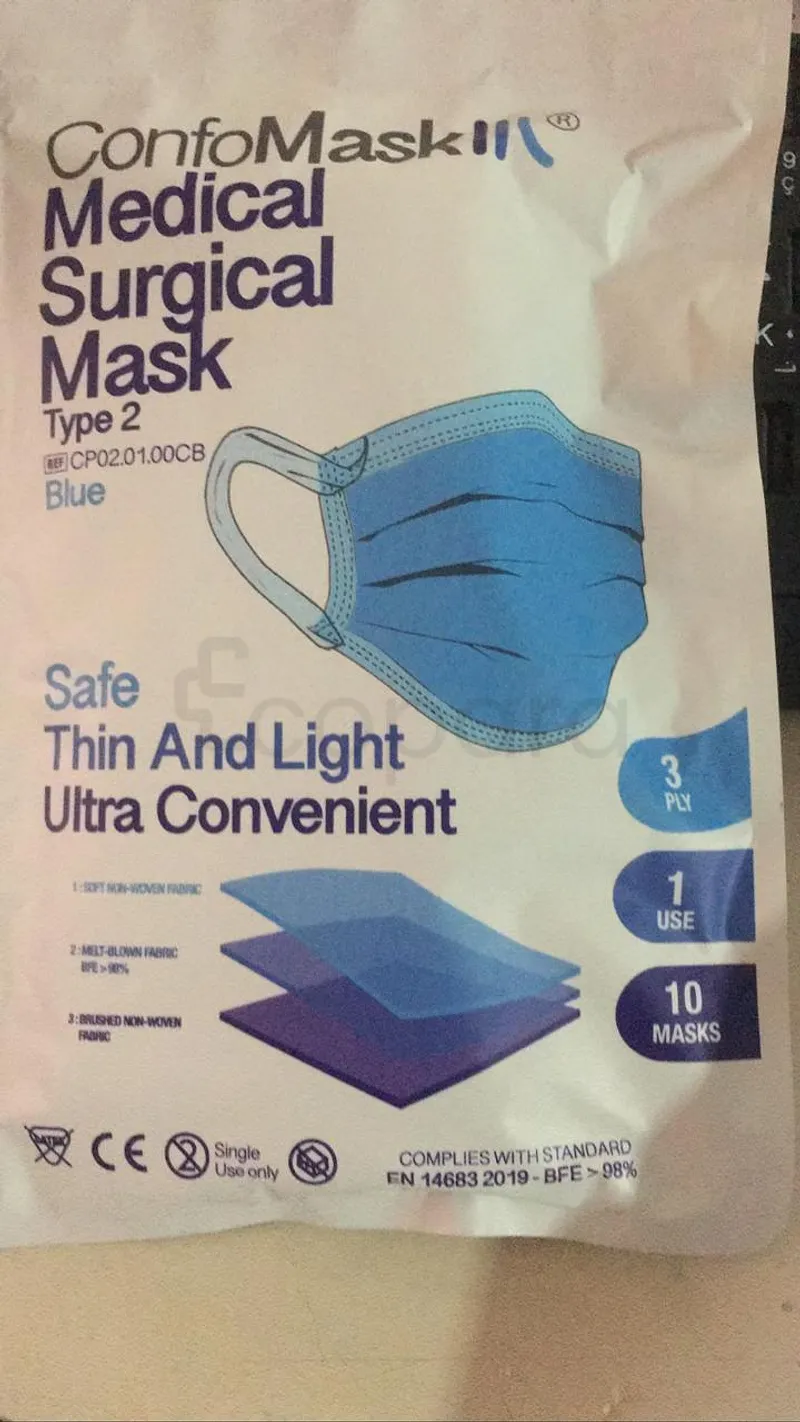 CONFOMASK III MEDICAL SURGICAL MASK MASQUE CHIRURGICAL TYPE 2 BLEU BOITE DE 10 - paravita