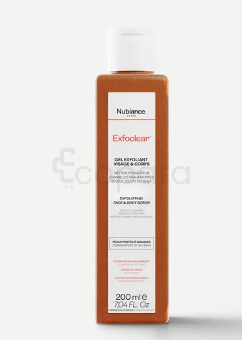 Exfoclear est un gommage pour le visage et le corps sans savon et au pH neutre qui combine des acides de fruits, de la poudre de noyau d’abricot et de l’eau des glaciers suisses. Particulièrement adapté aux peaux mixtes à grasses, il permet d’exfolier en douceur la peau pour révéler son éclat.
